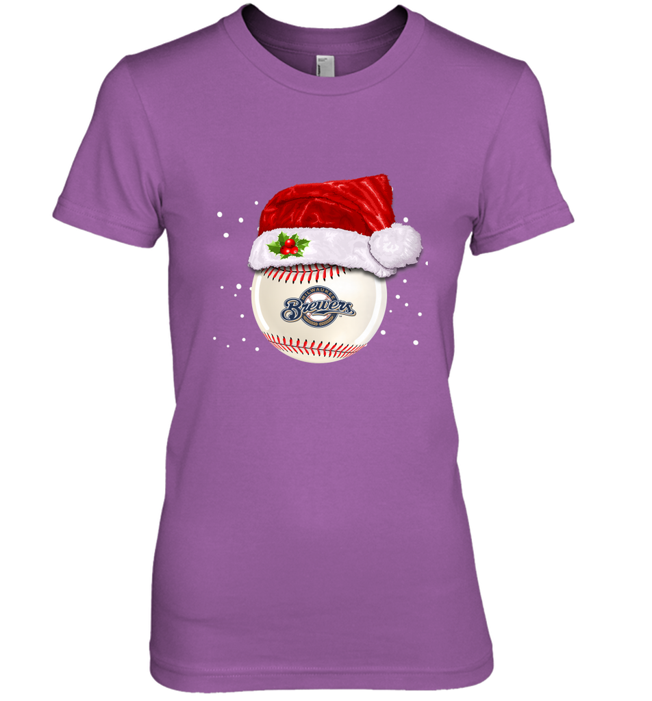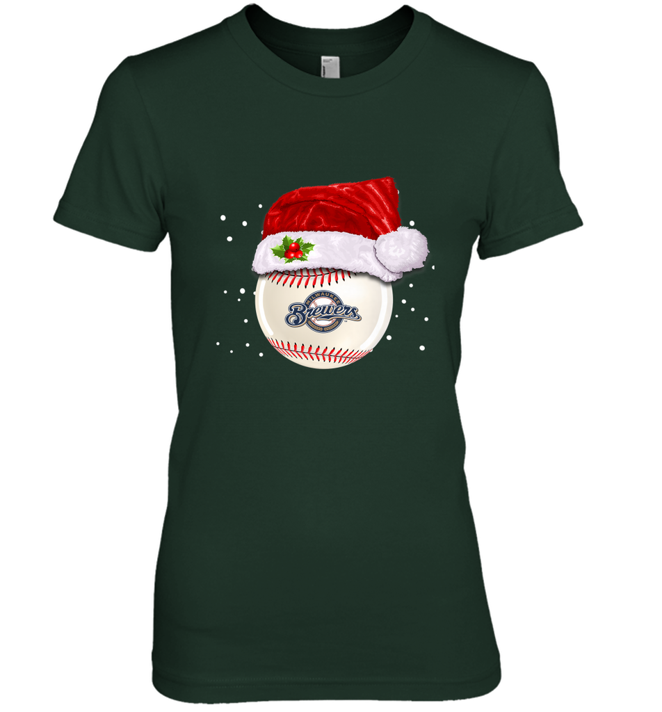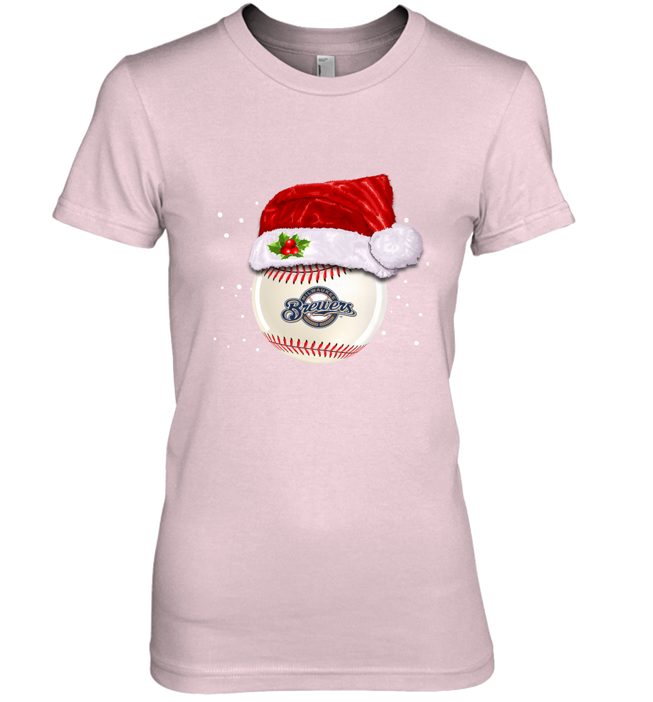 Milwaukee Brewers Logo Baseball Ball Christmas Santa Hat Xmas Sport Funny Snow Women's Premium T-Shirt
